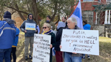 أفراد من الجالية الناطقة بالروسية يتظاهرون في أوتاوا دعماً لأوكرانيا